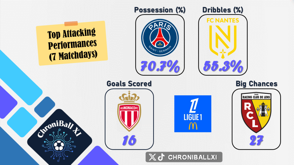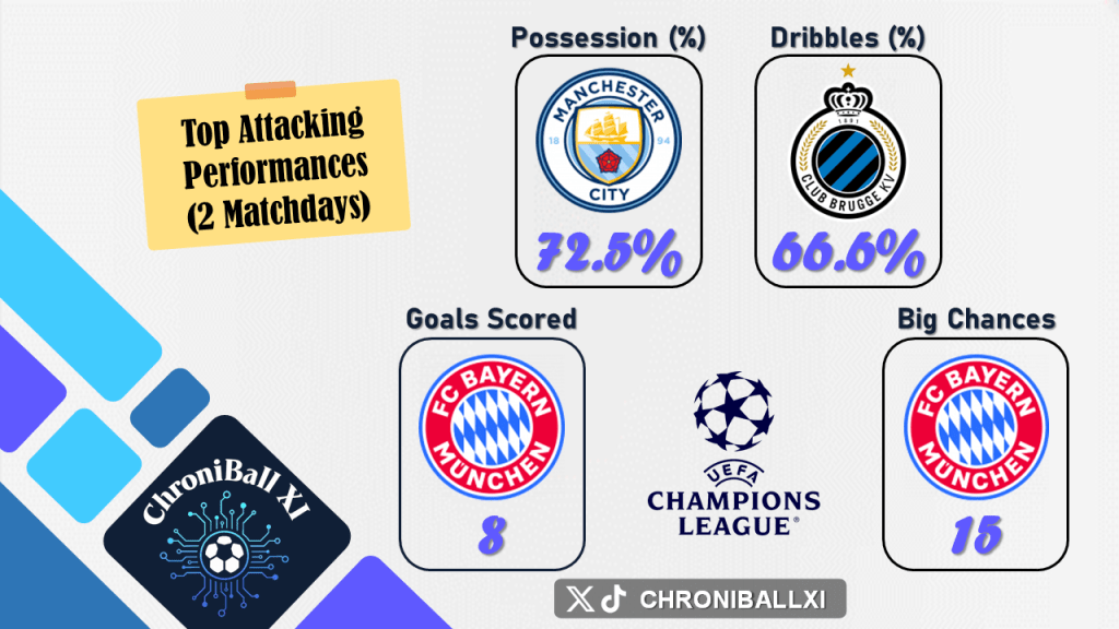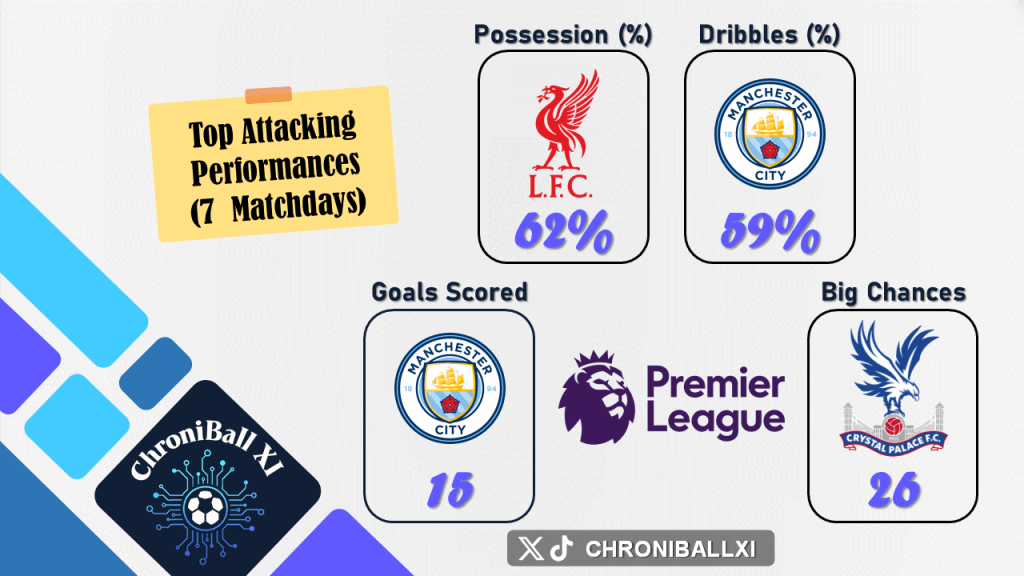 – Team rankings in attack are based on total goals scored, total big chances created, successful dribbles, and average ball possession.