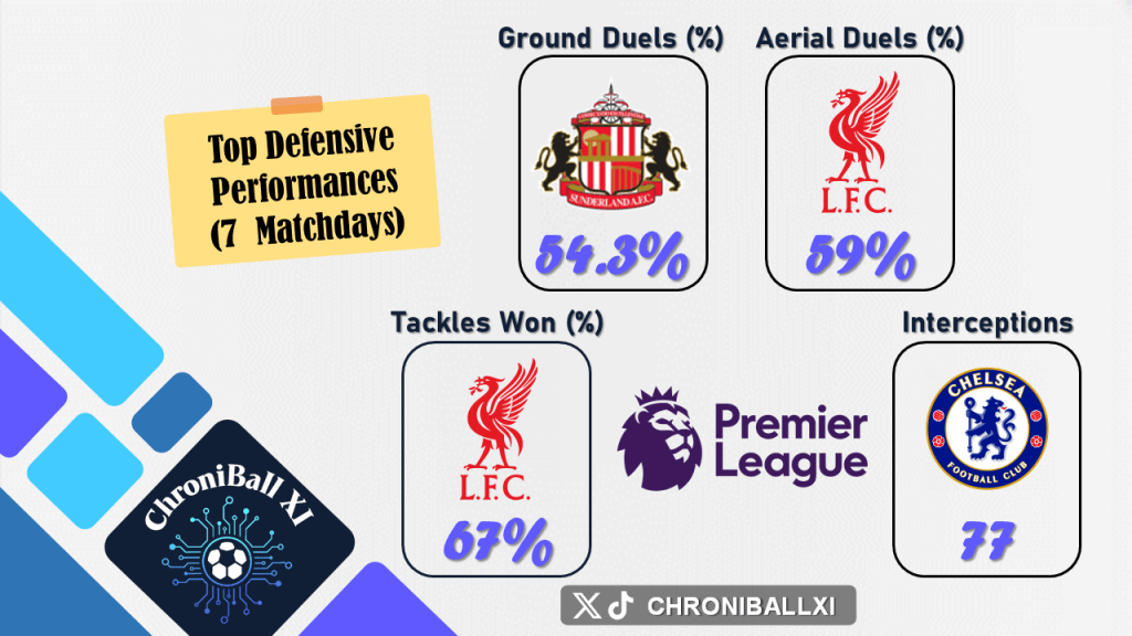 – Team rankings in defense are based on ground duels won, aerial duels won, tackles won, and total interceptions.